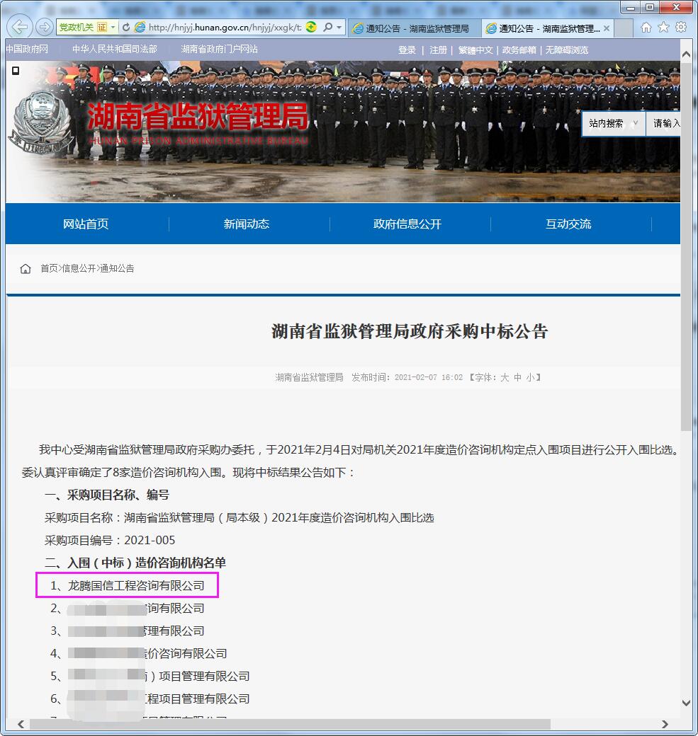 恭賀我司中標湖南省監(jiān)獄管理局2021年度造價咨詢機構庫