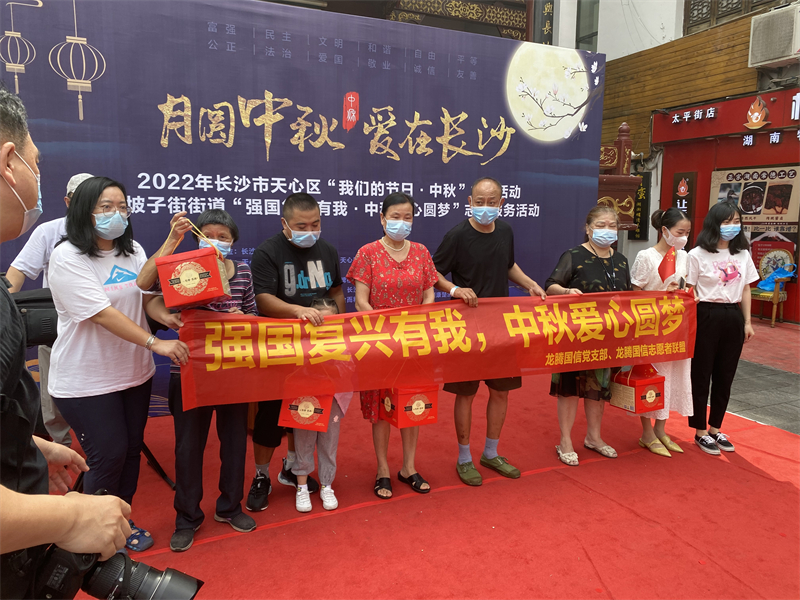龍騰國信黨支部、龍騰國信志愿者聯(lián)盟近日在長沙市天心區(qū)太平街古戲臺作為協(xié)辦單位,開展四季同行雷鋒家鄉(xiāng)學雷鋒天心區(qū)文明實踐志愿服務(wù)“滿天星”行動暨坡子街街道“強國復(fù)興有我,中秋愛心圓夢”志愿服務(wù)活動。