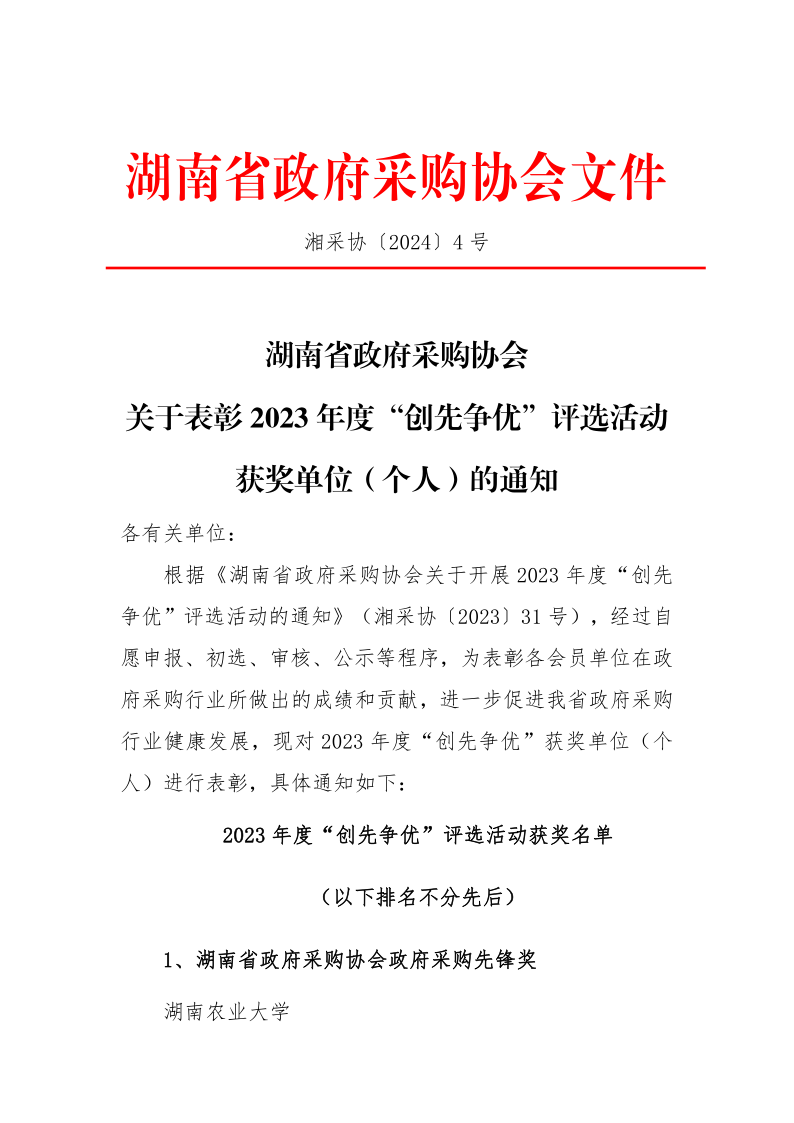我單位獲評湖南省政府采購協(xié)會2023年度“優(yōu)秀代理機構”