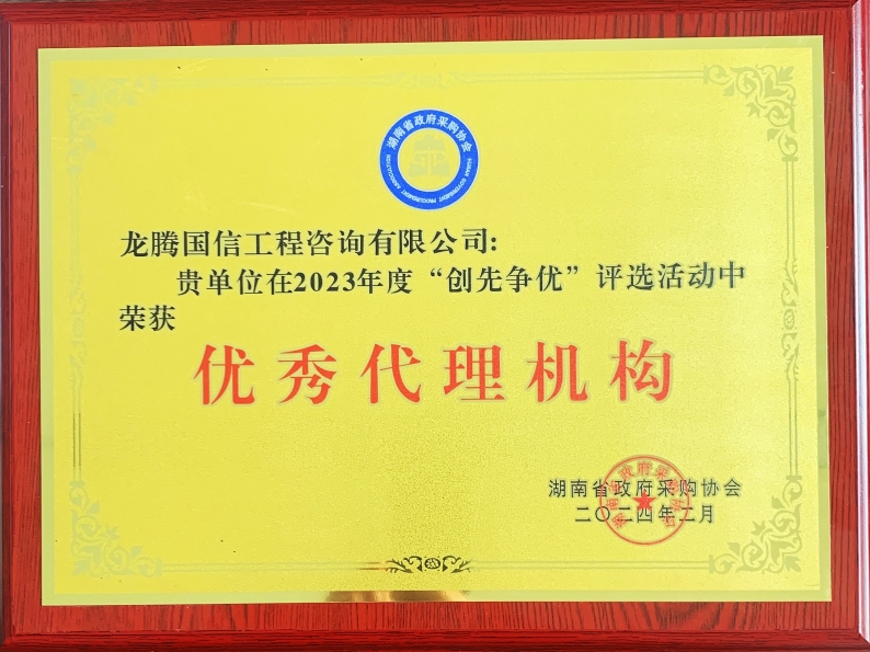 根據(jù)《湖南省政府采購協(xié)會關于開展2023年度“創(chuàng)先爭優(yōu)”評選活動的通知》(湘采協(xié)〔2023〕31號),為表彰各會員單位在政府采購行業(yè)所做出的成績和貢獻,進一步促進我省政府采購行業(yè)健康發(fā)展,我單位獲評2023年度“優(yōu)秀代理機構”。
