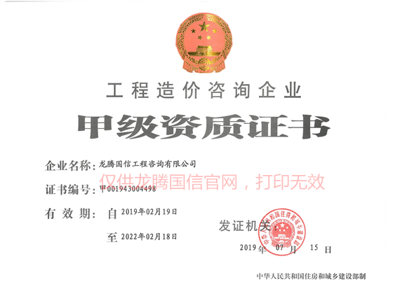 龍騰國(guó)信工程咨詢有限公司注冊(cè)資本金5000萬元,具有建設(shè)部頒發(fā)的工程造價(jià)咨詢企業(yè)甲級(jí)資質(zhì)和招標(biāo)代理資質(zhì)。我司具有中國(guó)建設(shè)工程造價(jià)管理協(xié)會(huì)AAA級(jí)信用企業(yè)、湖南省建設(shè)工程造價(jià)管理協(xié)會(huì)AAA級(jí)信用企業(yè)、湖南省建設(shè)工程造價(jià)管理協(xié)會(huì)優(yōu)秀會(huì)員單位、湖南省招標(biāo)投標(biāo)協(xié)會(huì)優(yōu)秀會(huì)員單位,同時(shí)連續(xù)多年被評(píng)委“湖南省守合同重信用”企業(yè)。